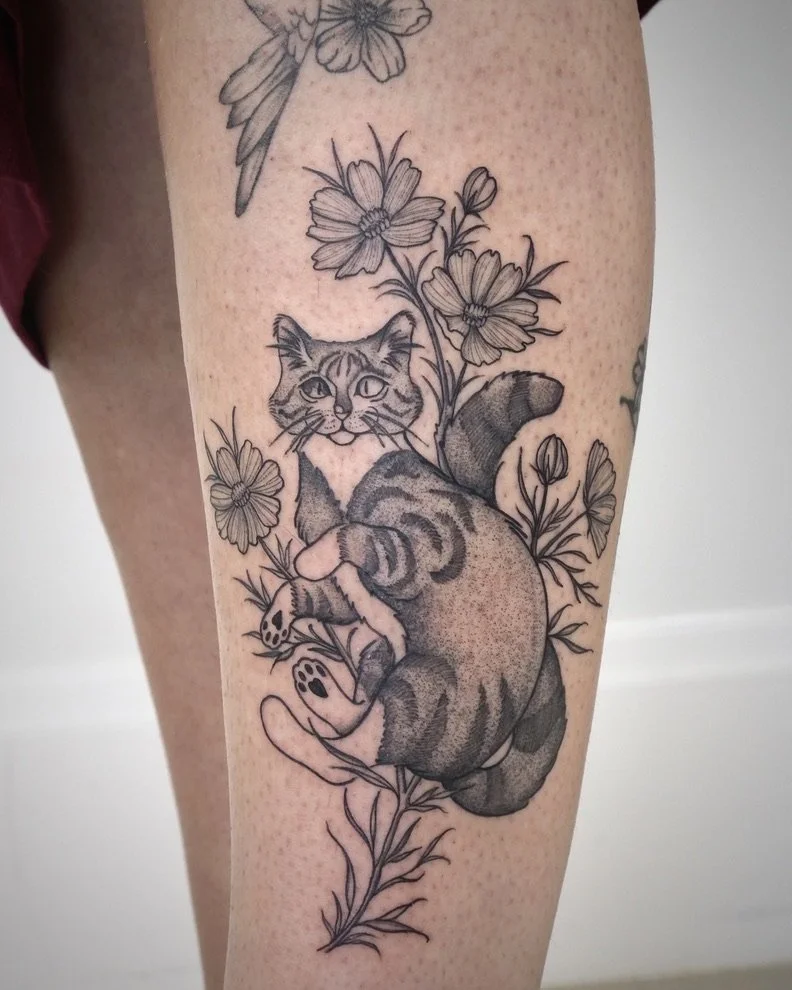"Hamany tattooed one of her beautiful flash pieces on me and it was such a great day. I love my new tattoo, and felt so comfortable the whole time I was in the studio. Thank you!"